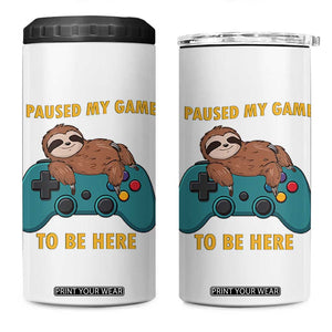I Paused My Game To Be Here 4 in 1 Can Cooler Tumbler Funny Sloth Gamer Video Games TS14