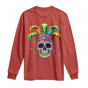 Mardi Gras Beads Sugar Skull Fat Tuesday New Orleans Long Sleeve Shirt