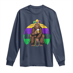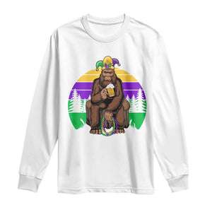 Mardi Gras Bigfoot Sasquatch Funny Beer Lover Long Sleeve Shirt