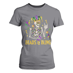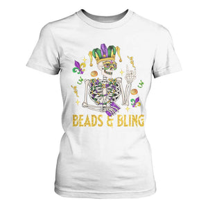 Mardi Gras Funny Skeleton Beads And Bling T Shirt For Women