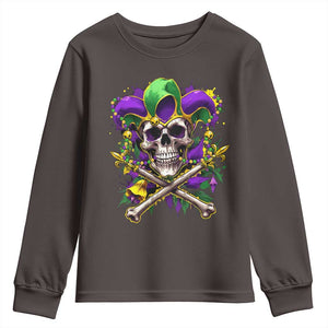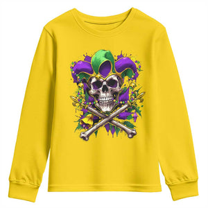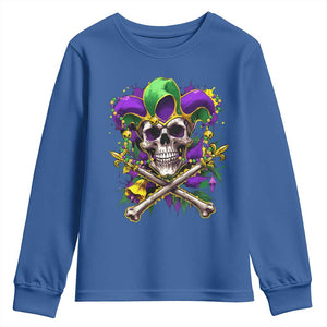Placeholder Mardi Gras Jester Skull Youth Sweatshirt New Orleans Skeleton Beads - PrintYourWear - Print Your Wear