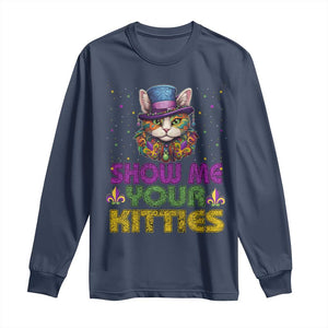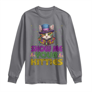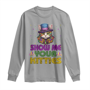 Placeholder Mardi Gras Long Sleeve Shirt Show Me Your Kitties Cool Cat Jester Hat Bead - PrintYourWear - Print Your Wear