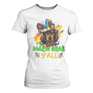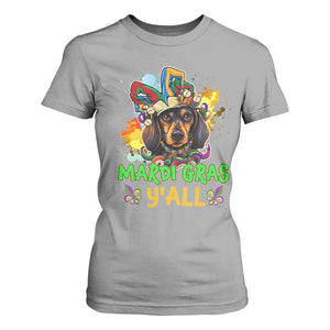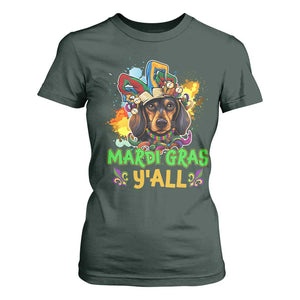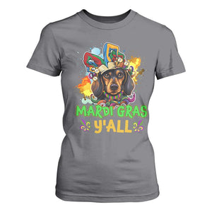Mardi Gras Y'all Dachshund Dog With Beads Colorful T Shirt For Women