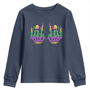 Placeholder Mardi Gras Youth Sweatshirt Jester Skeleton Rock Hand Fat Tuesday Festival - PrintYourWear - Print Your Wear