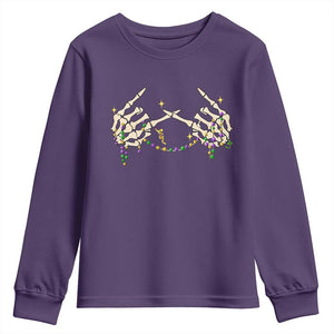 Placeholder Mardi Gras Youth Sweatshirt Skeleton Rock Hand Beads Fat Tuesday Festival - PrintYourWear - Print Your Wear