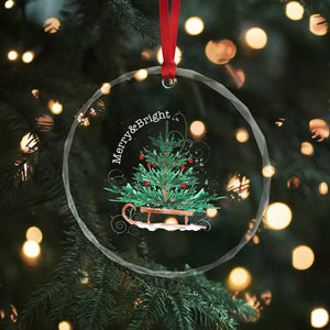 Placeholder Merry and Bright Xmas Sleigh Crystal Glass Ornament - PrintYourWear - Print Your Wear