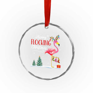 Merry Flocking Xmas Pink Flamingo Crystal Glass Ornament