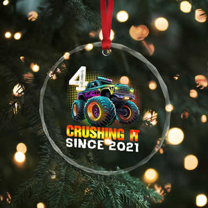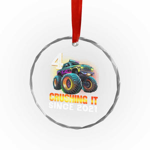 Monster Truck Birthday Crystal Glass Ornament Happy 4th Bday Party 4 Years Old Boy
