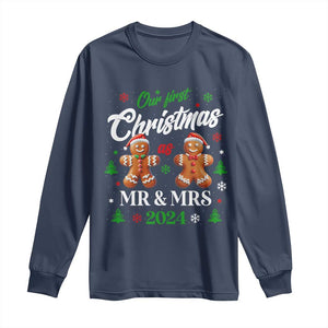 Our First Christmas As Mr Mrs 2024 Long Sleeve Shirt Cute Gingerbread Couple