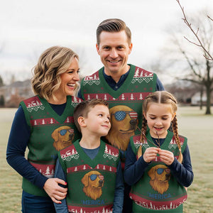 Elevate your everyday wardrobe with the Patriotic Dog Sleeveless V-Neck Knit Sweater Vest from Print Your Wear — the perfect balance of comfort, versatility, and timeless appeal. Whether worn over a T-shirt, styled under a blazer, or on its own, this vest adds dimension and polish to any outfit, in any season.
