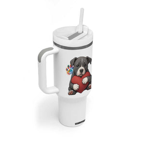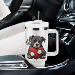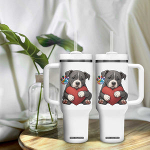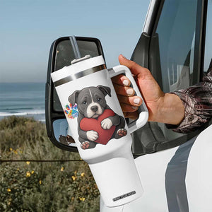 Pitbull Mom Tumbler With Handle Cute Puppy Hugging Heart Love Dog TS12