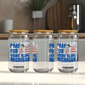Stay Hydrated in Style with Our Pray for Grand Blanc Church Clear Glass Can!
