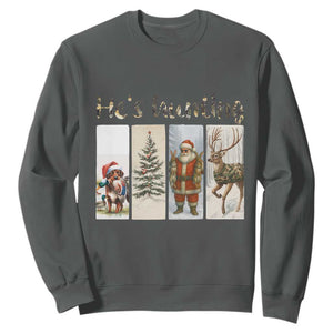 Placeholder Santa Funny Christmas Hunter Look Sweatshirt He Is Hunting - PrintYourWear - Print Your Wear