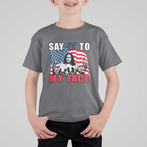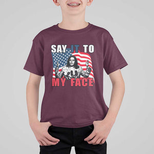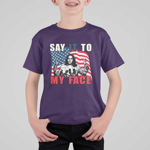 Placeholder Say It To My Face Harris T Shirt For Kid American Flag Presidential Election 2024 - PrintYourWear - Print Your Wear