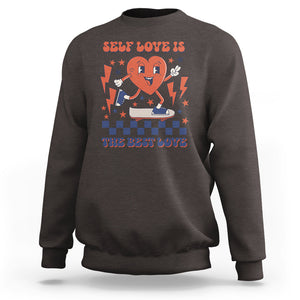 Self Love Sweatshirt Self-love is The Best Love Retro Groovy Heart Valentine's Day