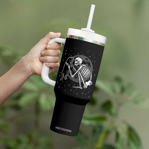 Skeleton and Black Cat Tumbler With Handle Skull Kitty Cute Goth Halloween Pet