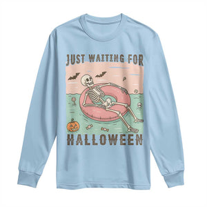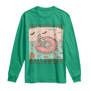 Spooky Summer Skeleton Long Sleeve Shirt Just Waiting For Halloween Summer Pool Party TS02