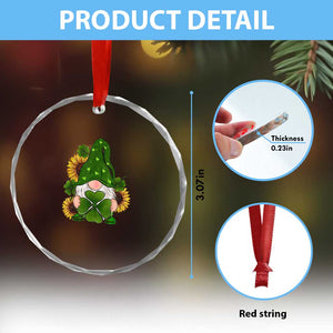 St Patrick's Day Cute Gnomes Crystal Glass Ornament Holding Shamrock Sunflower