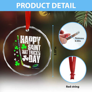 St. Patrick's Day Ice Hockey Crystal Glass Ornament Happy Saint Hat Trick's Lucky Shamrocks