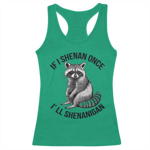 St Patricks Day Raccoon Meme Racerback Tank Top If I Shenan Once I'll Shenanigan