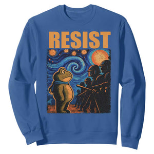 Cozy never looked so cool. Whether you're layering up for chilly mornings, lounging in comfort, or stepping out with confidence, the Starry Night Resist Frog Sweatshirt Resistance Protest Surreal Art Graphic is your perfect blend of softness, durability, and standout design. Made for self-expression, made to last.