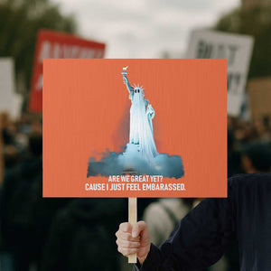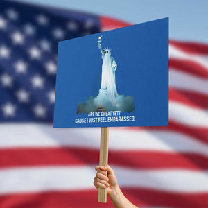 Placeholder Statue of Liberty Ghost Protest Sign Are We Great Yet Cause I Just Feel Embarrased - PrintYourWear - Print Your Wear