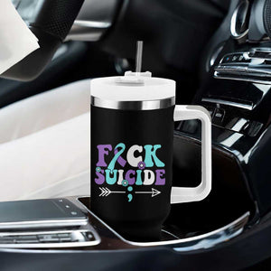 Placeholder Suicide Prevention Awareness Tumbler With Handle Teal Purple Ribbon Fuck Suicide - PrintYourWear - Print Your Wear