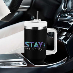 Placeholder Suicide Prevention Awareness Tumbler With Handle Teal Purple Ribbon Semicolon Stay Tomorrow Needs You Warrior - PrintYourWear - Print Your Wear