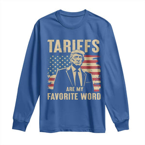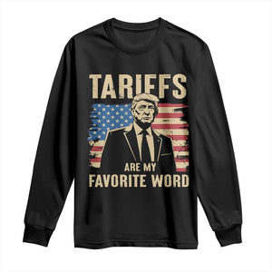 Placeholder Tariffs Are My Favorite Word Long Sleeve Shirt Trump 2025 Patriotic American Flag Vintage - PrintYourWear - Print Your Wear