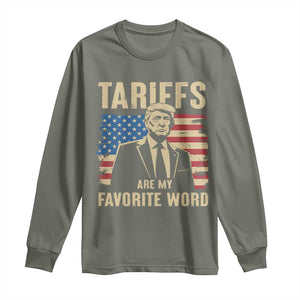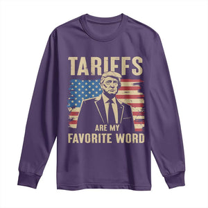 Tariffs Are My Favorite Word Long Sleeve Shirt Trump 2025 Patriotic American Flag Vintage