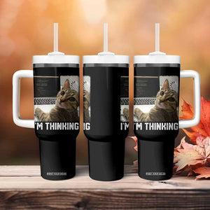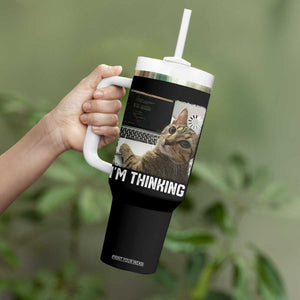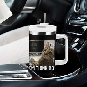 Tech Support Cat Tumbler With Handle I'm Thinking Funny Computer Engineer Coding Kitty