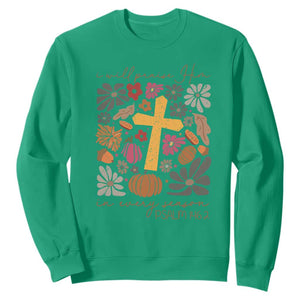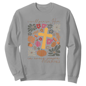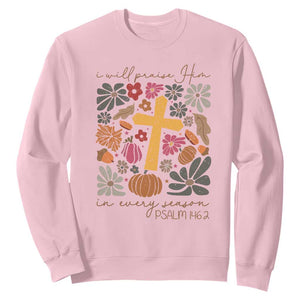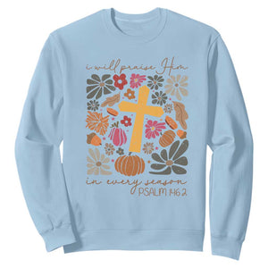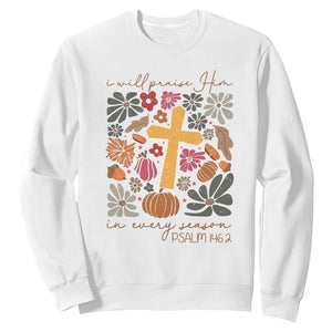 Placeholder Thanksgiving Christ Sweatshirt I Will Praise Him In Every Season Psalm 146:2 Fall Season - PrintYourWear - Print Your Wear