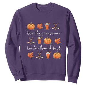 Thanksgiving Day Sweatshirt Tis The Season To Be Thankful Pumpkin Ice Hockey Maple Leaf TS11
