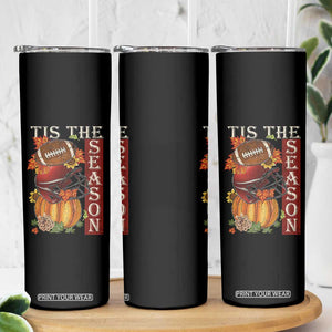 Placeholder Thanksgiving Tis The Season Skinny Tumbler American Football Pumpkin Fall Season - PrintYourWear - Print Your Wear