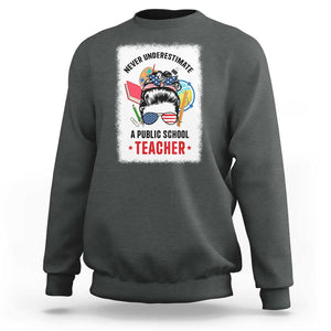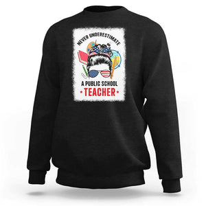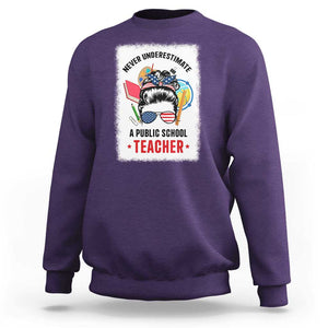 Placeholder Tim Walz Sweatshirt Never Underestimate A Public School Teacher Messy Bun - PrintYourWear - Print Your Wear