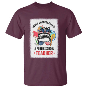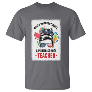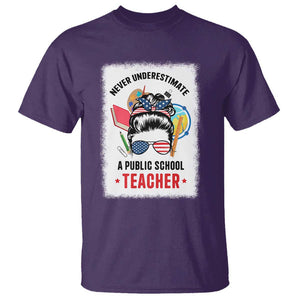Placeholder Tim Walz T Shirt Never Underestimate A Public School Teacher Messy Bun - PrintYourWear - Print Your Wear