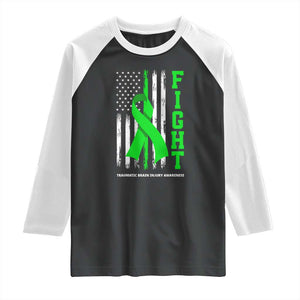 Traumatic Brain Injury Awareness Raglan Shirt Fight TBI American US Flag TS02