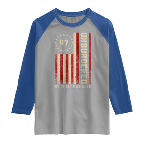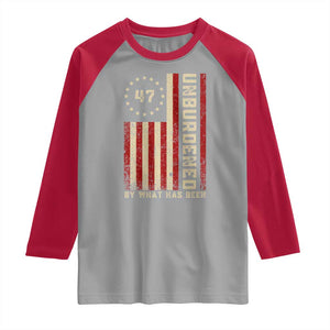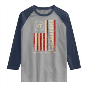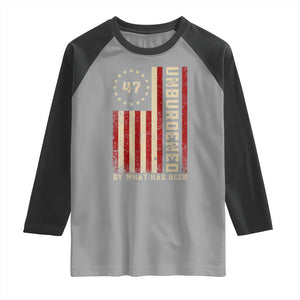 Placeholder Trump 2025 Raglan Shirt Unburdened By What Has Been American Flag - PrintYourWear - Print Your Wear