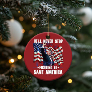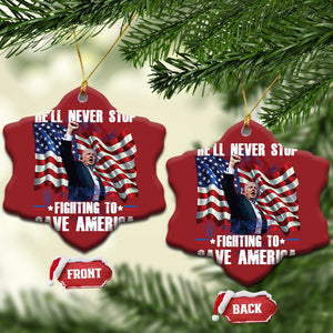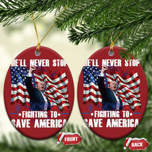 Trump Raised Fist Christmas Ornament He'll Never Stop Fighting To Save America TS02
