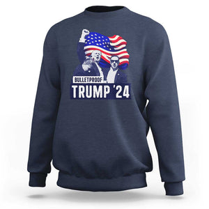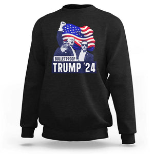 Trump Raised Fist Sweatshirt Bulletproof 2024 Stronger Trump American Flag TS09