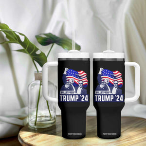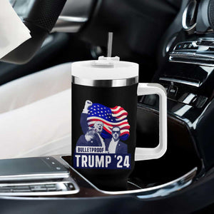 Trump Raised Fist Tumbler With Handle Bulletproof 2024 Stronger Trump American Flag