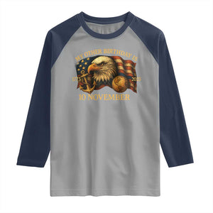 Placeholder Veteran 250th Anniversary Raglan Shirt My Other Birthday Is 10 November 1775 - PrintYourWear - Print Your Wear