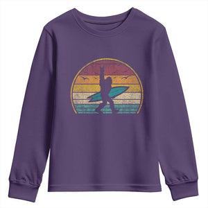 Vintage Bigfoot Surfing Youth Sweatshirt Sasquatch Beach Vacation Retro Surf Sun Shaka