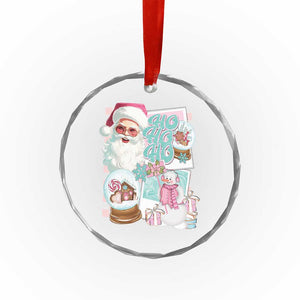 Vintage Xmas Crystal Glass Ornament Pink Santa Claus Ho Ho Ho