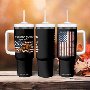 We're Not Going Back Kamala Harris 2024 Election Tumbler With Handle Childless Cat Lady Vintage Western American Flag